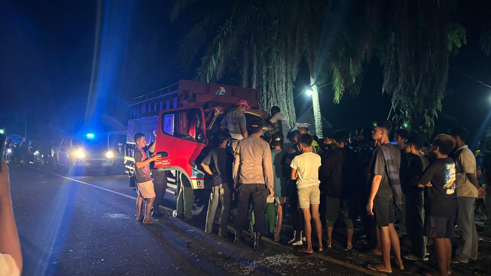 Peristiwa berawal saat truk tronton Mitsubishi BA 8097 TU membawa cangkang sawit yang dikemudikan YHP, 40, terpaksa berhenti dan parkir di tepi kiri jalan setelah mengalami kebocoran ban bagian depan. Truk tersebut berada di jalur nasional tanpa sempat dievakuasi lebih jauh.