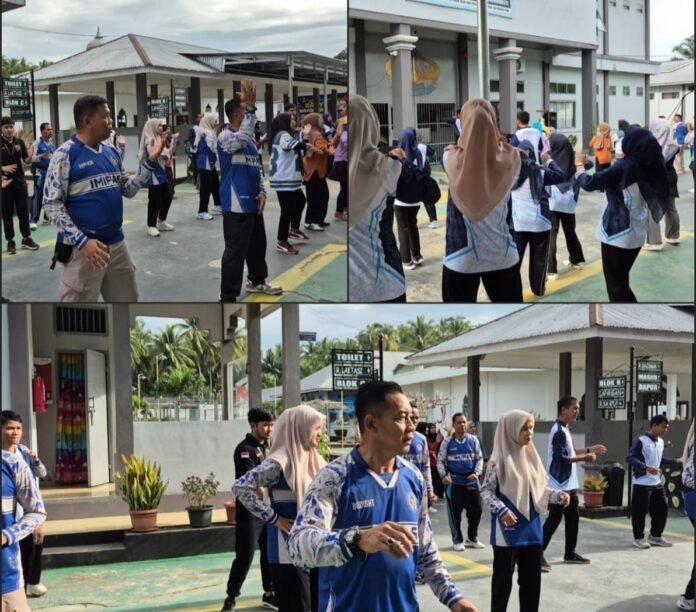 ARAHRAKYAT– Dalam rangka menginternalisasi gaya hidup sehat sekaligus mempererat tali silaturahmi, segenap jajaran petugas Lembaga Pemasyarakatan (Lapas) Kelas IIB Lubuk Basung beserta anggota Dharma Wanita Persatuan (DWP) melaksanakan kegiatan senam bersama pada Sabtu pagi (17/1).